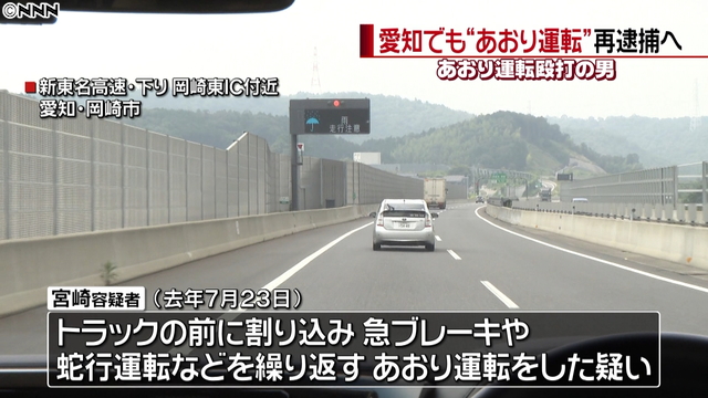 捜査関係者によると、宮崎容疑者は去年7月23日、岡崎市の新東名高速下りで、トラックの前に割り込み、急ブレーキや蛇行運転などを繰り返すあおり運転をして無理やり減速させた疑いがもたれている。警察は宮崎容疑者の身柄を夕方までに愛知県警本部に移送し、再逮捕する方針。