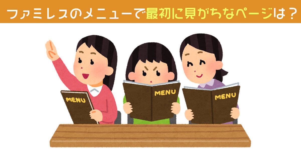 ファミレスなどのメニューを見るとき、あなたが最初にチェックしがちなページはどこですか?
