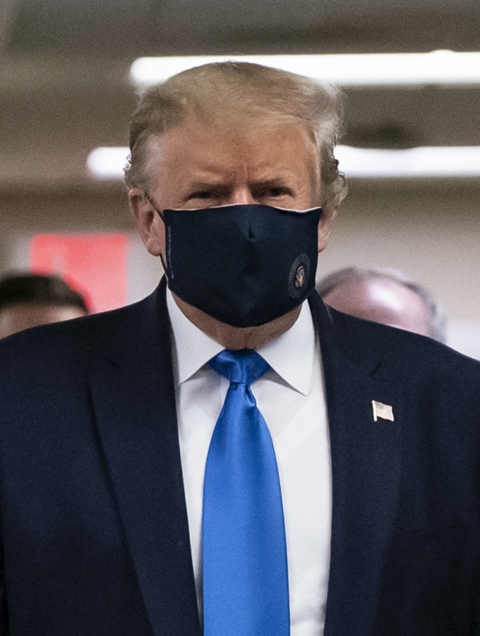 블룸버그통신 등에 따르면 트럼프 대통령은 이날 메릴랜드주의 월터 리드 국립군 의료센터에 방문해 마스크를 쓴 채 공식 일정을 소화했다. 트럼프 대통령이 마스크를 착용한 채 카메라 앞에 선 것은 이번이 처음이다.