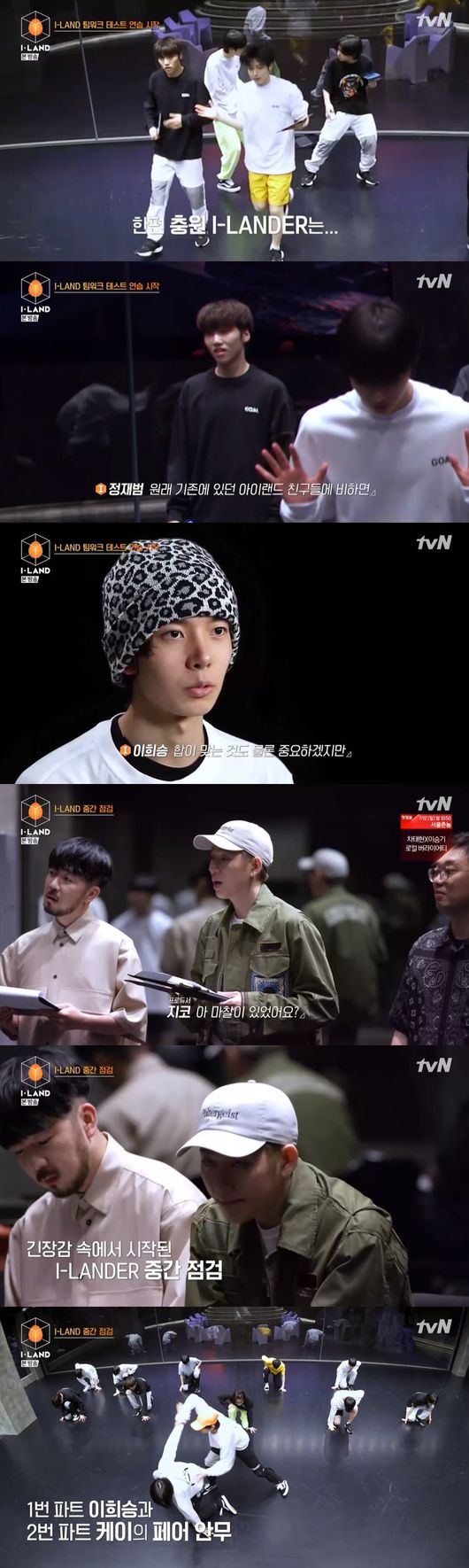 10일 방송된 Mnet, tvN 'I-LAND'에서는 아이랜더 멤버들의 2차 미션으로 BTS의 곡 '불타오르네' 팀워크 무대가 공개됐다.