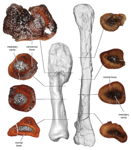 이들은 진단의 정확성을 확인하기 위해 화석 뼈를 골육종에 걸린 인간의 비골뿐만 아니라 같은 종의 공룡에게서 나온 정상적인 정강이뼈와 비교했다.