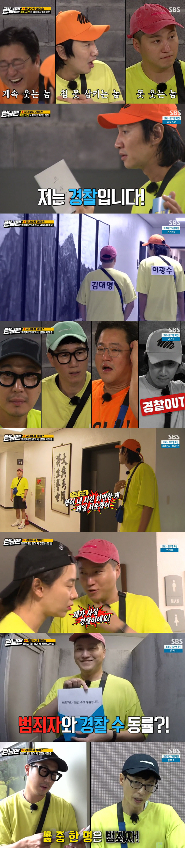 취조 시간, 곽도원은 "처음에 힌드를 두개를 받았다"면서 "범죄자가 아닌 2인은 김상호와 전소민이다"고 했다. 그때 이광수는 제작진의 훔친 이름표를 통해 의심을 받았고, 투표 후 다득표자로 가장 먼저 아웃됐다. 이후 공개된 이광수의 정체는 선배 경찰이었다.