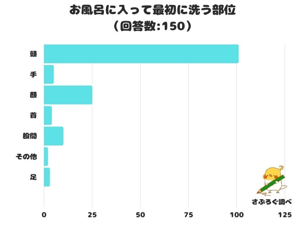 「首」を選んだ方は、上半身→下半身→頭の順番で洗うという方がほとんど。