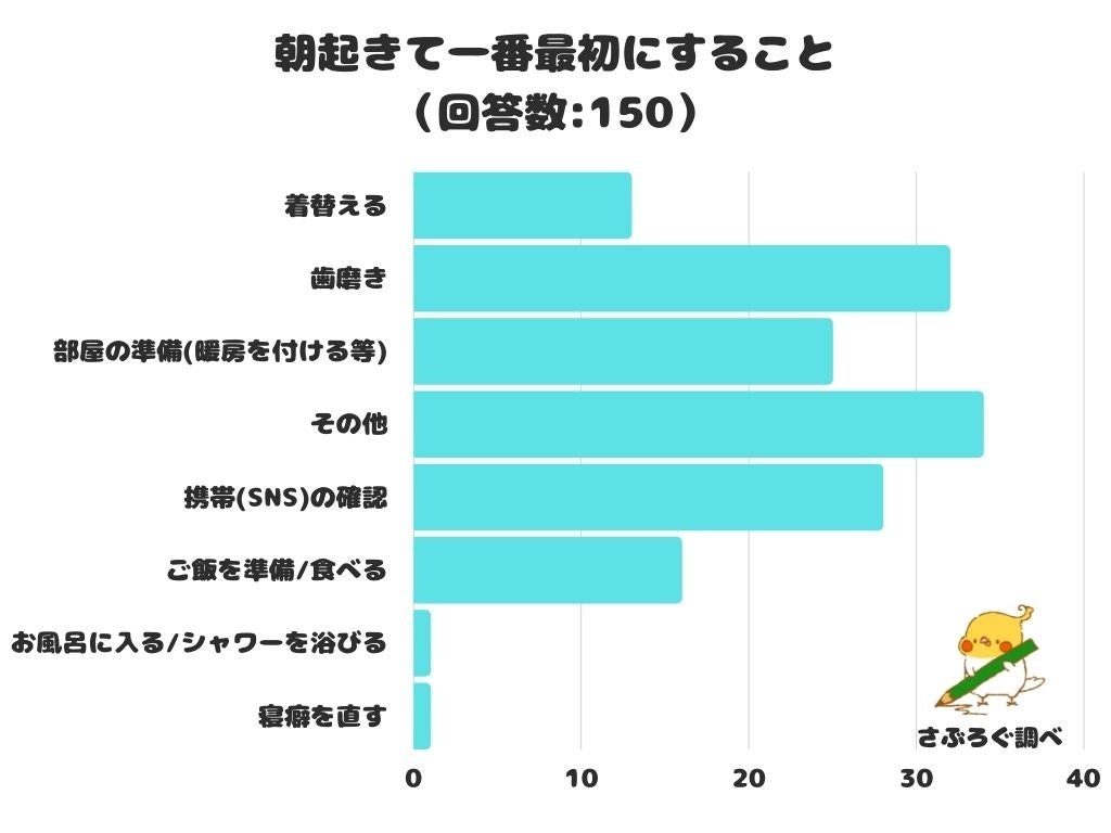 朝起きて一番最初にすることをアンケートにて調査したところ、