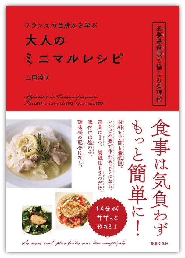 レシピ不要でササっと料理が作れるようになる、ムダをそぎ落としたフランス流のミニマルレシピが大好評!発売後即重版となった『フランスの台所から学ぶ 大人のミニマルレシピ』が、この度3刷重版となりました。人気料理研究家・上田淳子さんが美食大国フランスのマダムたちからヒントを得た、驚くほどミニマルでお手軽、おいしくて見栄えもする「フランス的ごはん」のメソッドを紹介したレシピ本です。「シンプルな調味料と料理法なのにごちそうに見える」「無理しないで料理を楽しめる」「ささっと作れるバランスのとれたワンプレートが嬉しい」などの声があがっています。